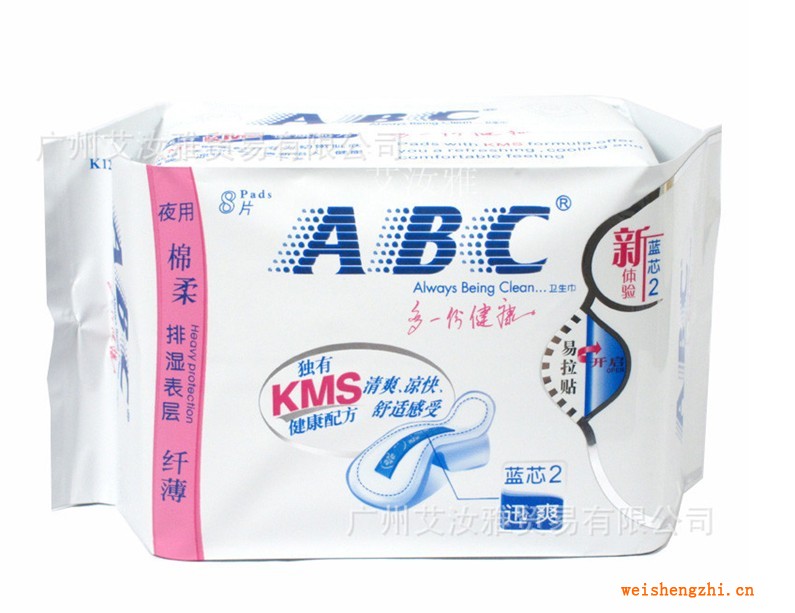 正品ABC卫生巾 夜用纤薄棉柔排湿表层卫生巾含KMS健康配方
