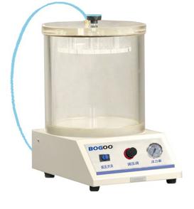 试验原理:通过对真空室抽真空,使浸在水中的试样产生内外压差,观测试样内气体外逸情况,以此判定试样的密封性能;通过对真空室抽真空,使试样产生内外压差,观测试样膨胀及释放真空后试样形状恢复情况,以此判定试样的密封性能。