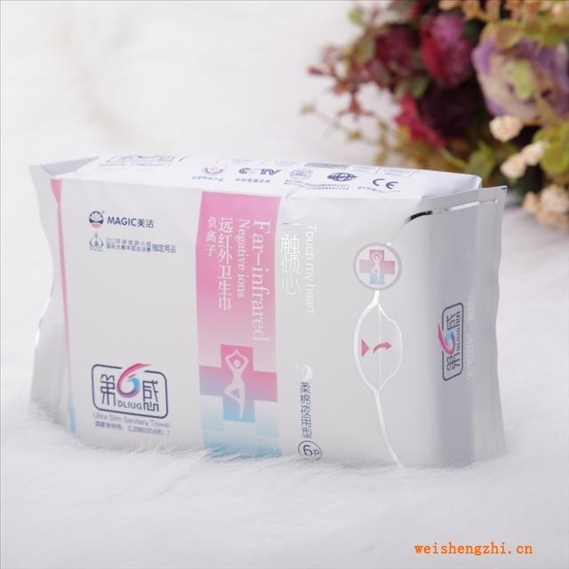 远红外负离子健康卫生巾,具有暖宫、温经、嫩肤、消炎、镇痛、除异味等调理作用。特有的芯片中含有远红外线、负离子和纳米银等三大科技成果,并获得国家专利(专利号:ZL200810216951.7)。产品在使用中其芯片通过纯物理过程使细胞中的分子运动加剧,加快血液循环及新陈代谢,在血液循环中把长期淤积于体内的血块、炎症等污秽物带出。同时,释放的负离子对经血的腥臭味和分泌物等异味可以有效地被分解,而纳米银则具有强效的抗菌、杀菌功效,能改善女性痛经、白带、月经不调,预防多种妇科疾病,使女性生殖健康得到有效呵护。长期使用远红外、负离子、纳米银芯片功能的卫生巾,具有改善微循环,通经活络,祛除血栓、血毒,清宫排毒、消炎、安神、镇定、减压、改善血液循环、人体微生态平衡及增强免疫力的作用。
