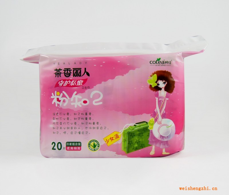 “茶香丽人”茶叶卫生巾使用纯天然茶叶原料,能有效地消除异味带来的烦恼,提倡健康的理念,树立品牌意识,成就有品味的女性。