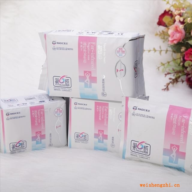 远红外负离子健康卫生巾,具有暖宫、温经、嫩肤、消炎、镇痛、除异味等调理作用。特有的芯片中含有远红外线、负离子和纳米银等三大科技成果,并获得国家专利(专利号:ZL200810216951.7)。产品在使用中其芯片通过纯物理过程使细胞中的分子运动加剧,加快血液循环及新陈代谢,在血液循环中把长期淤积于体内的血块、炎症等污秽物带出。同时,释放的负离子对经血的腥臭味和分泌物等异味可以有效地被分解,而纳米银则具有强效的抗菌、杀菌功效,能改善女性痛经、白带、月经不调,预防多种妇科疾病,使女性生殖健康得到有效呵护。长期使用远红外、负离子、纳米银芯片功能的卫生巾,具有改善微循环,通经活络,祛除血栓、血毒,清宫排毒、消炎、安神、镇定、减压、改善血液循环、人体微生态平衡及增强免疫力的作用。