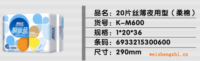 天津卫生巾|康怡生|瞬吸蓝|20片标准夜用型(柔棉)|夜用