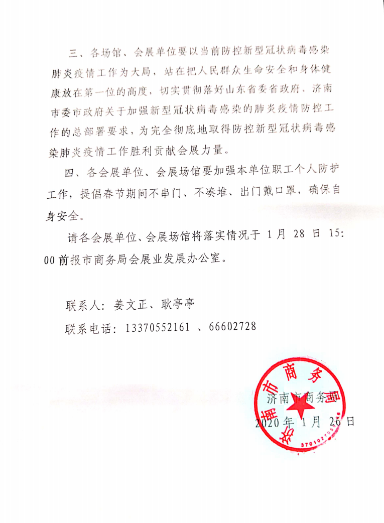 关于“2020山东生活用纸展延期举办”的通告、“2020中国日化洗涤用品(济南)展览会延期举办”的通告