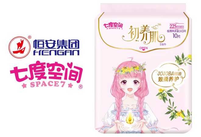 恒安七度空间推出了高端卫生巾“初养肌”系列,萃取天然JOJOBA(霍霍巴)精华,以婴儿般细腻触感为亮点,锚准初潮少女及众多精致少女群体。